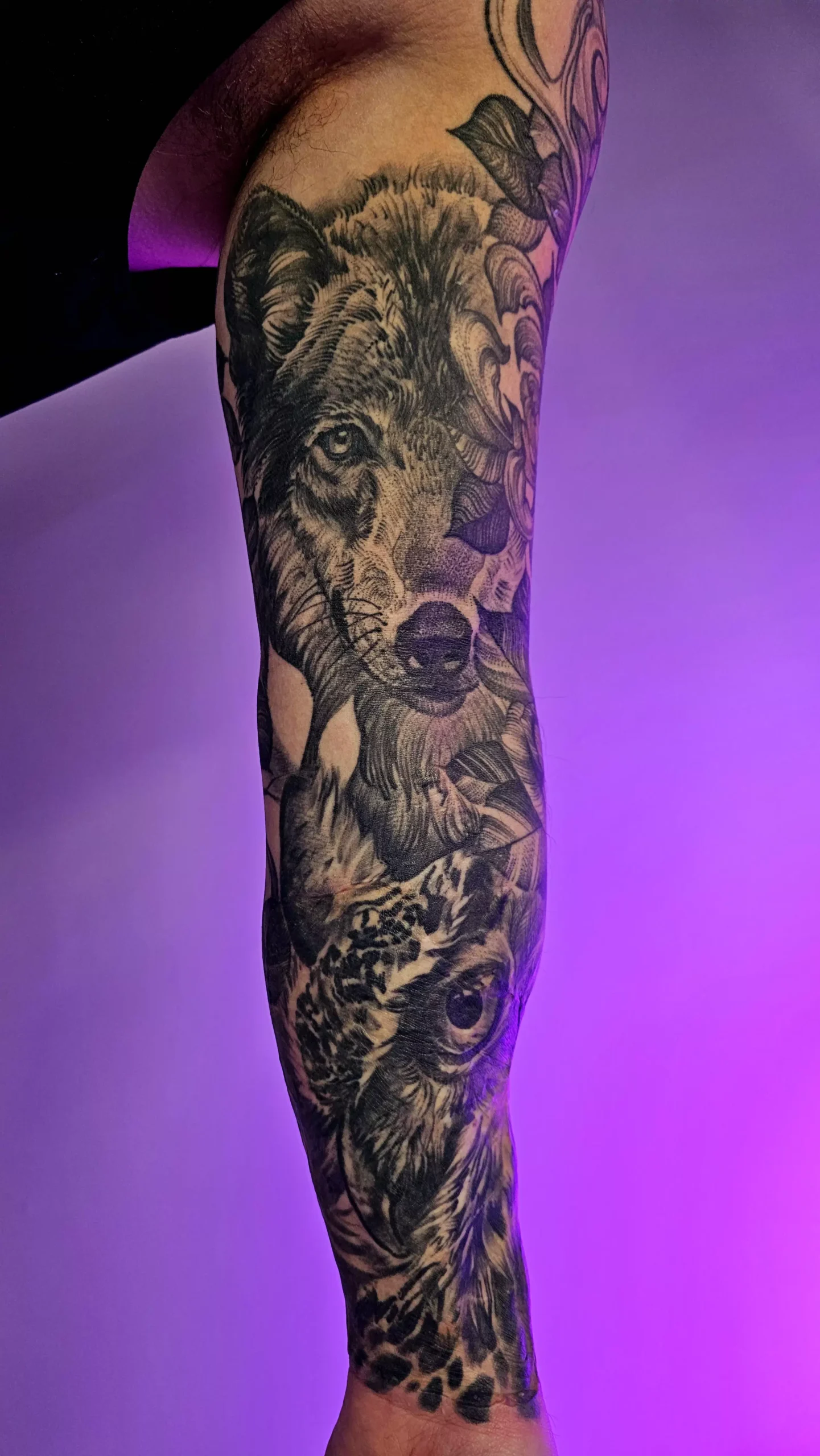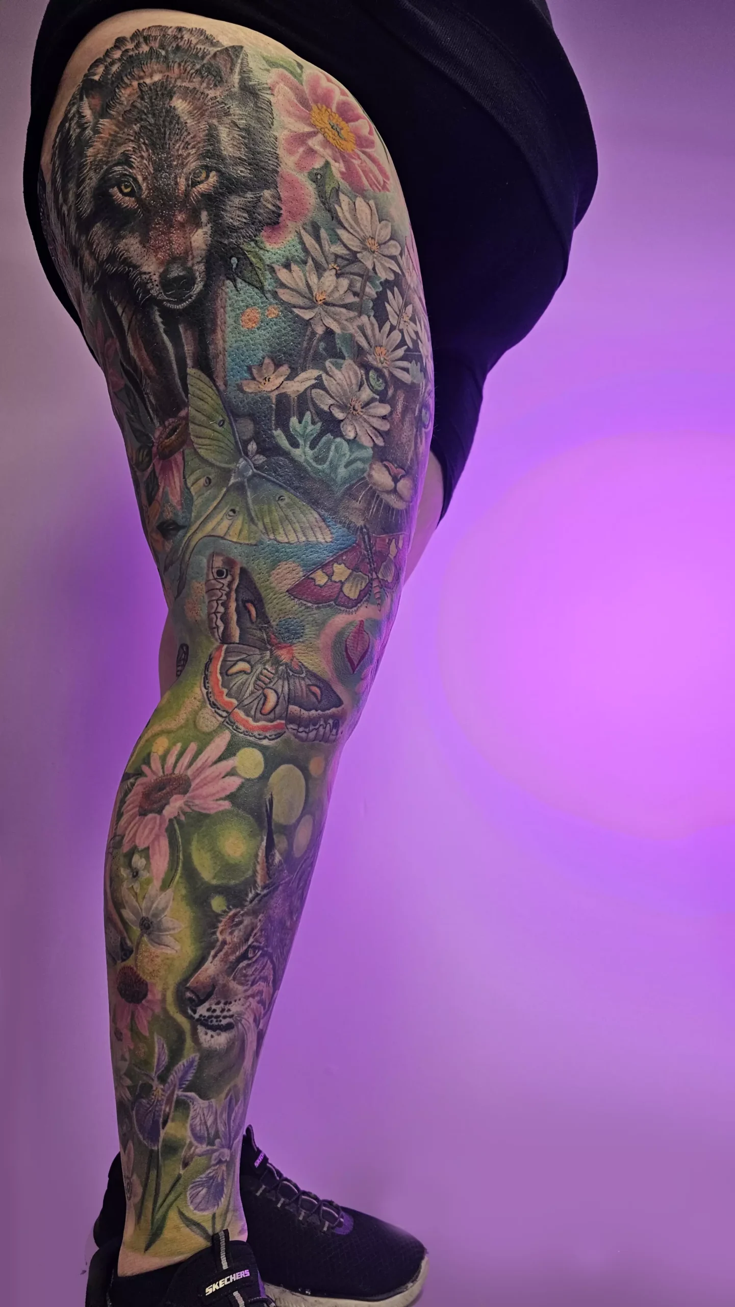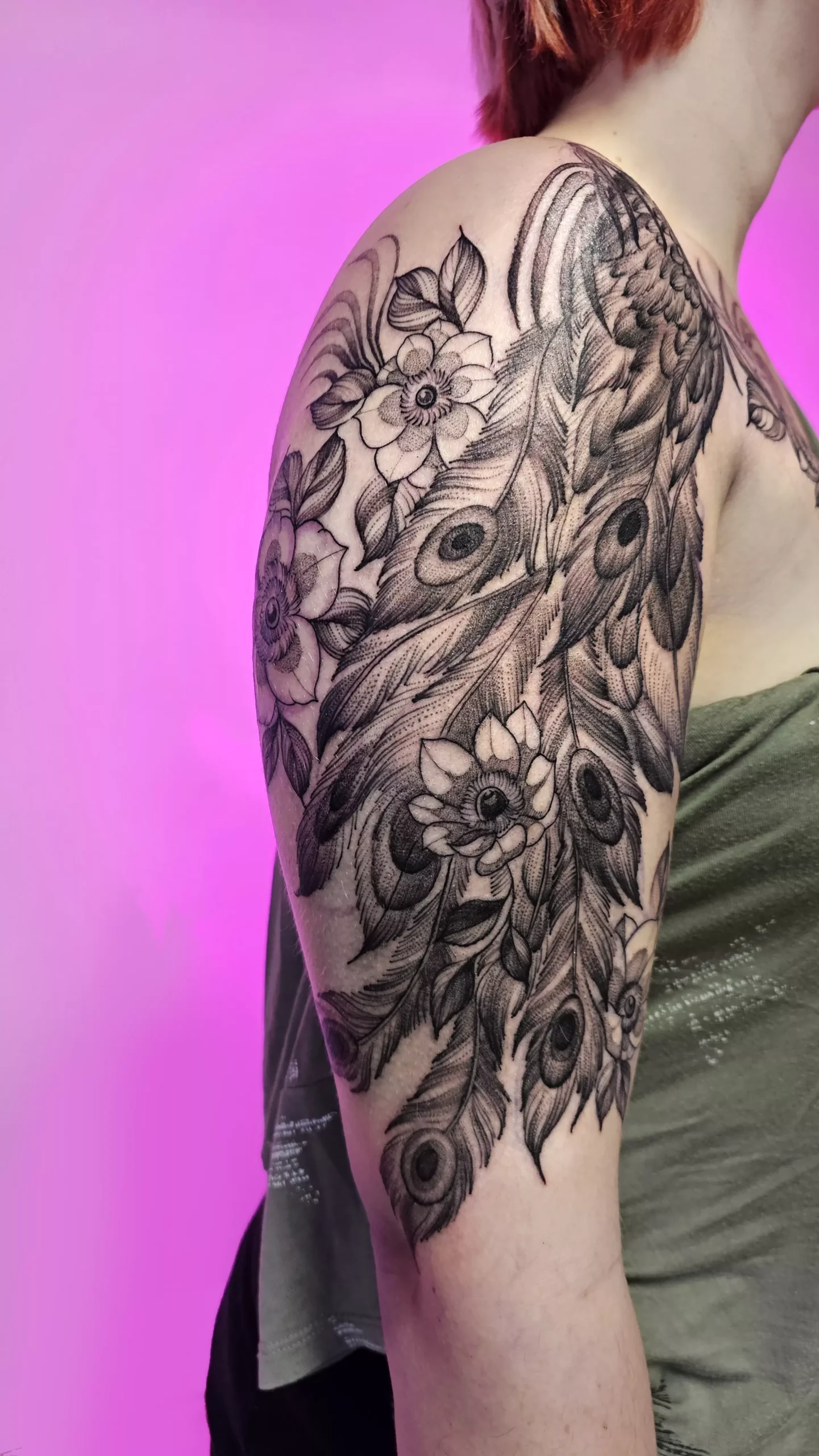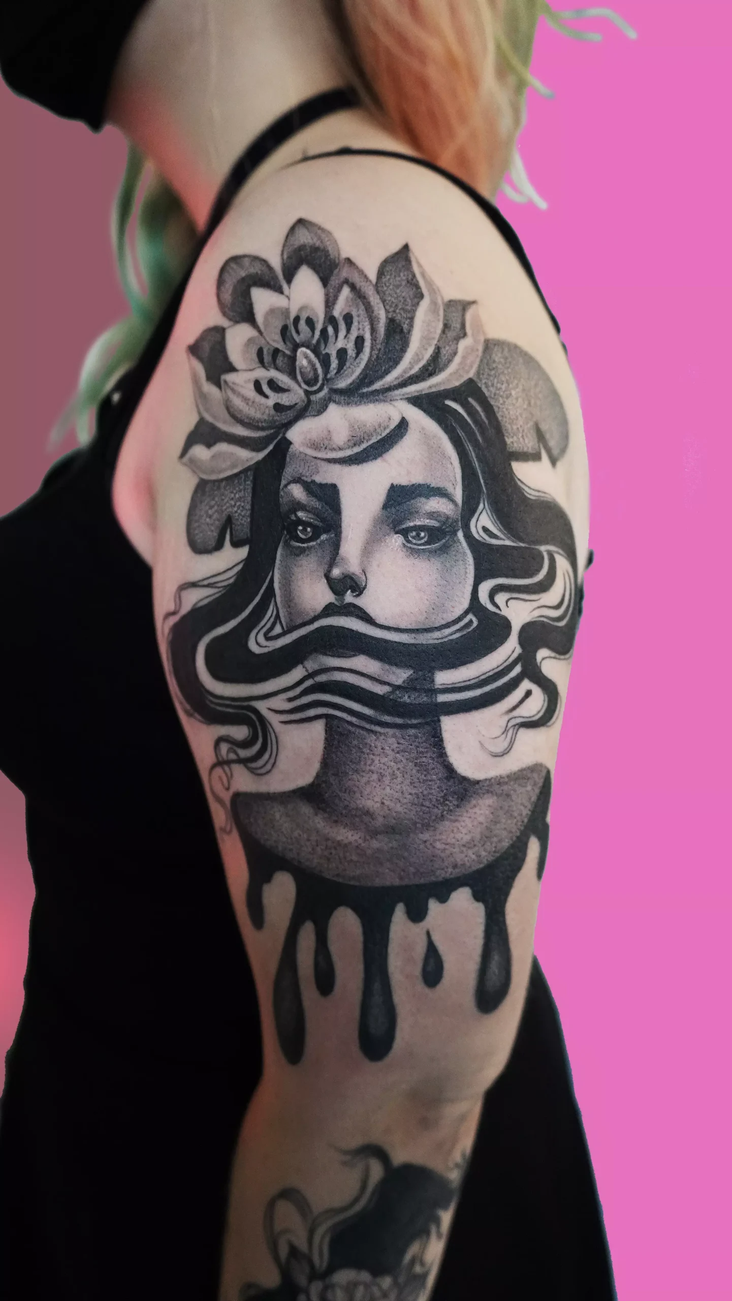 Abby is a tattoo artist originally from Montreal. She has been painting and drawing for almost 20 years. A Concordia graduate with a bachelor’s degree in fine arts specializing in painting and drawing and a minor in biology To see some of her oil paintings visit the gallery site here. She specializes in cover-ups, realism, geometric and dotwork styles, and has been tattooing for 9 years.