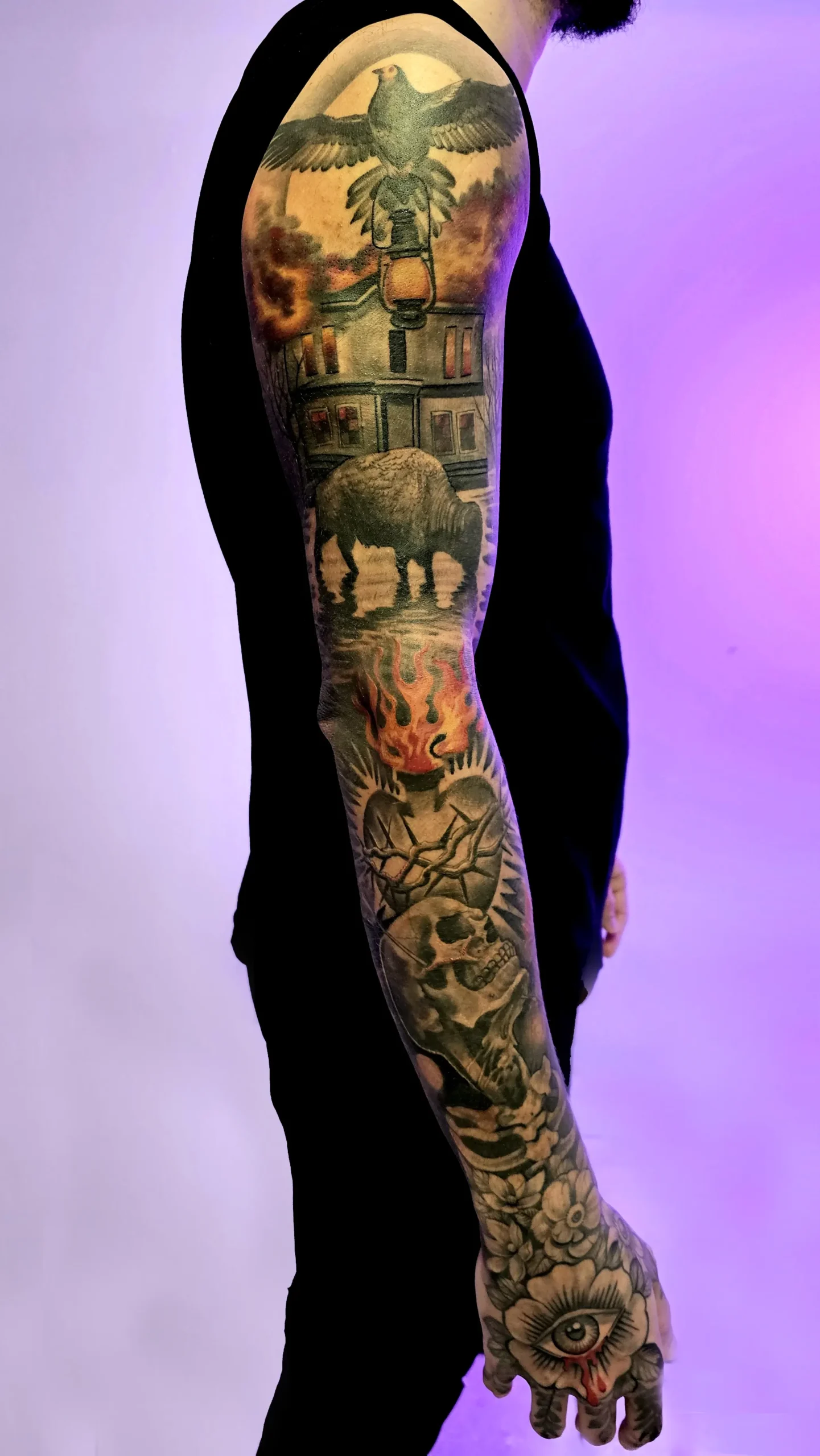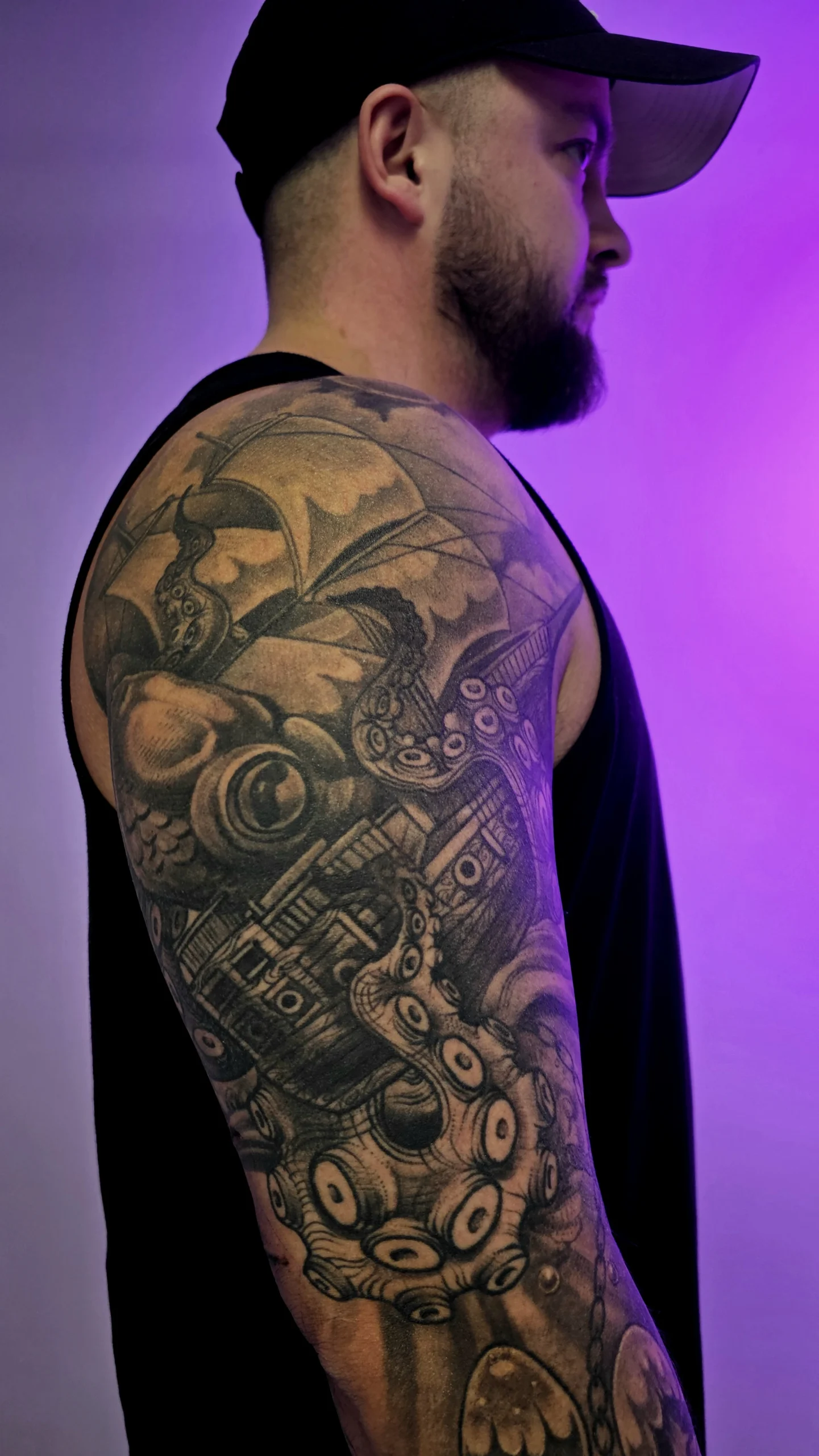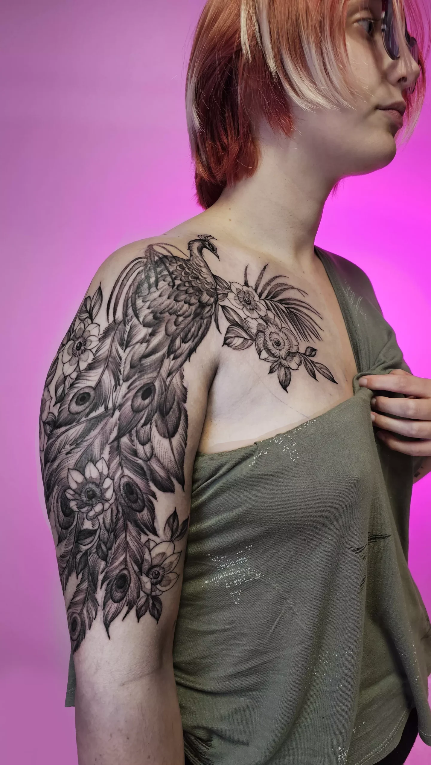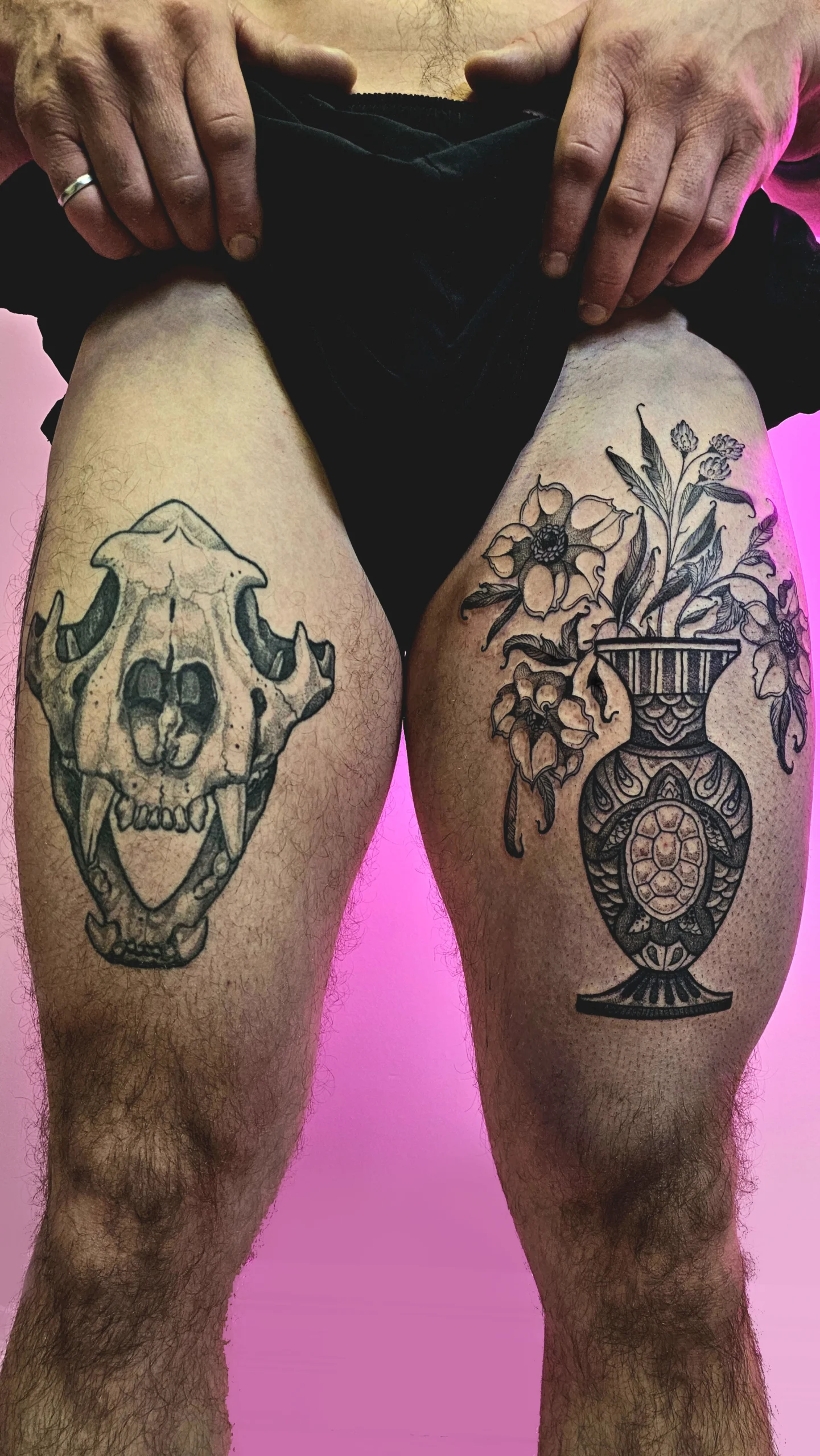 Abby is a tattoo artist originally from Montreal. She has been painting and drawing for almost 20 years. A Concordia graduate with a bachelor’s degree in fine arts specializing in painting and drawing and a minor in biology To see some of her oil paintings visit the gallery site here. She specializes in cover-ups, realism, geometric and dotwork styles, and has been tattooing for 9 years.