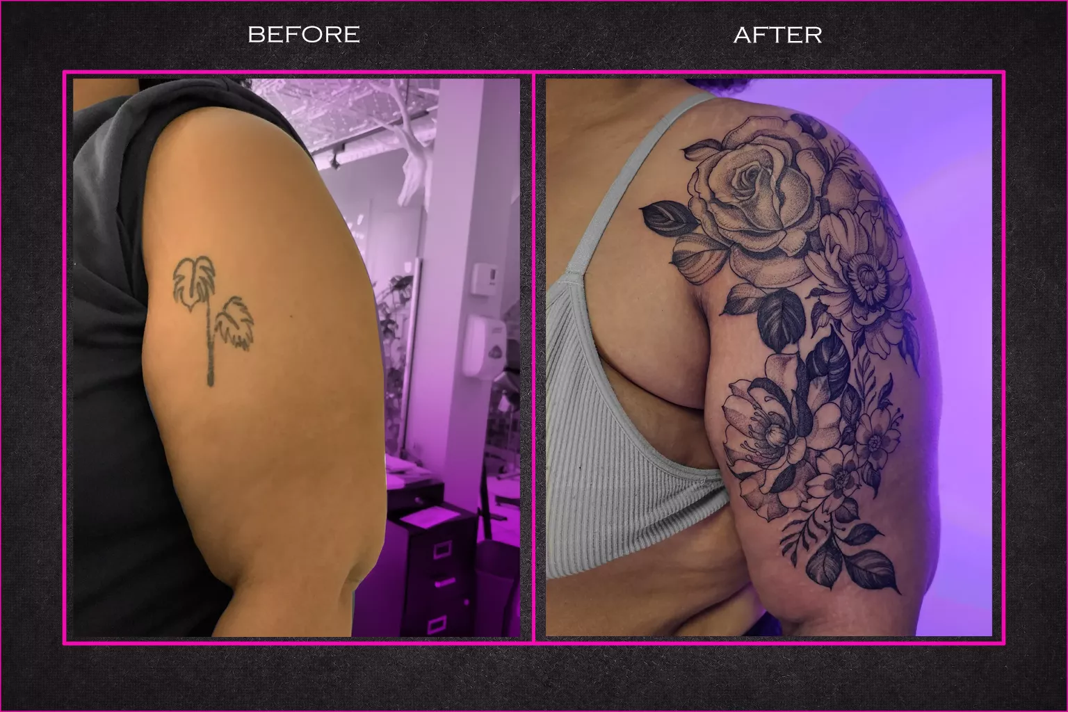 If you’re ready to transform an old tattoo into something intentional and powerful — bring your ideas.