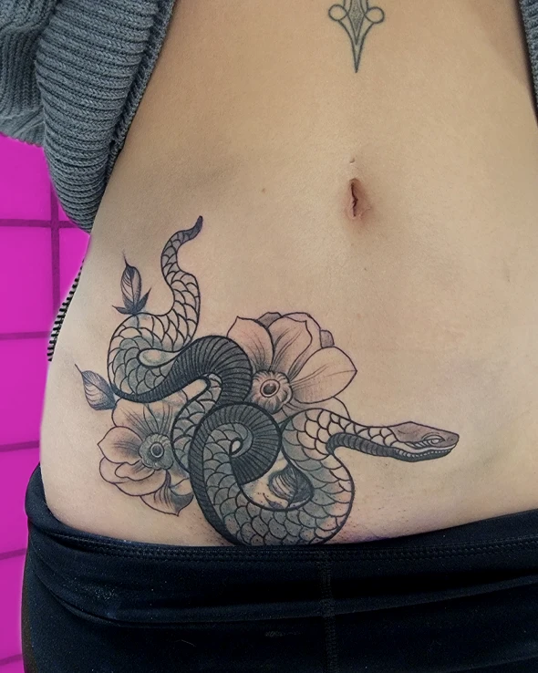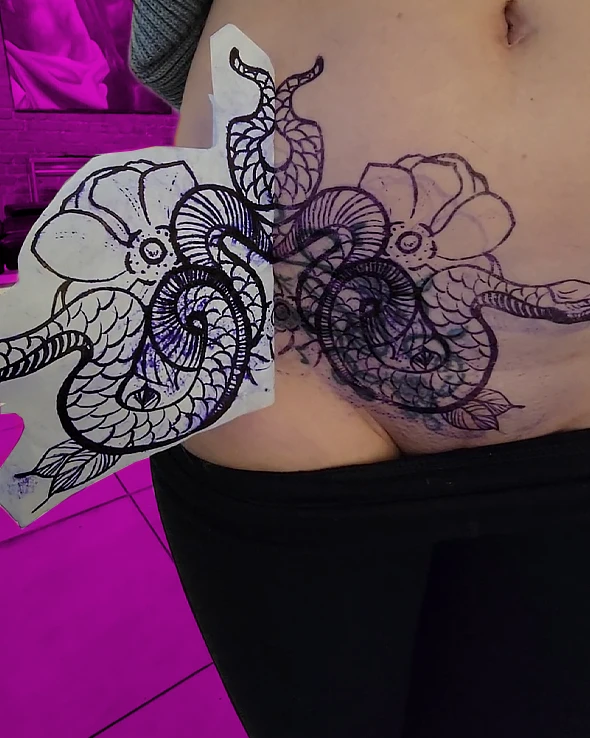 At Tattoo Abyss in Montreal, Abby specialize in strategic cover-ups that work with the existing ink —not against it.
