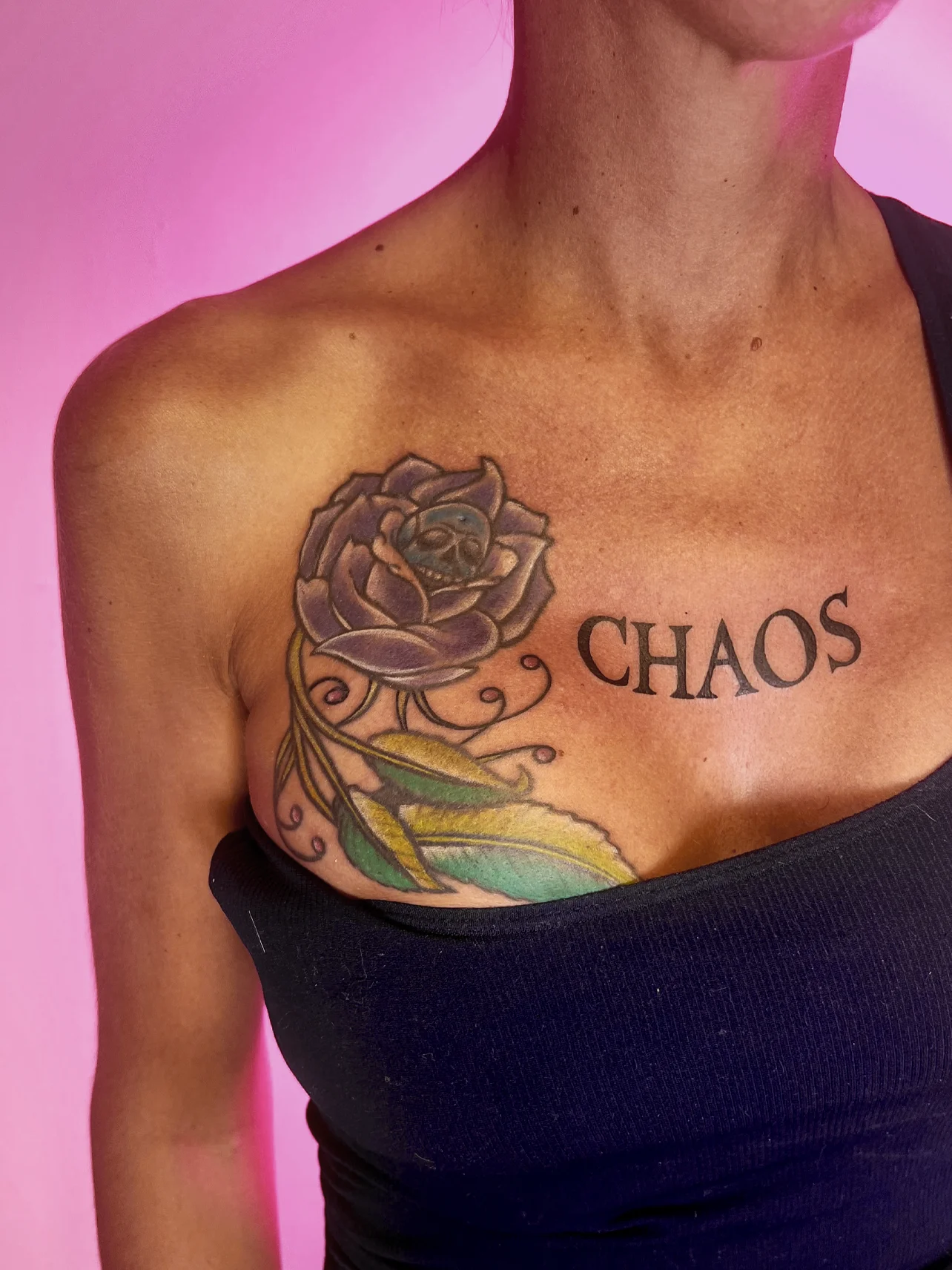 Eva’s style leans more toward the bold, expressive side of traditional tattooing.